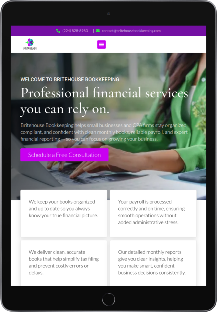The client needed a professional website to clearly present their bookkeeping and financial services to small businesses and CPA firms. Their online presence lacked a structured platform where visitors could easily understand services, access helpful resources, and schedule consultations. This made it difficult to build trust and convert visitors into potential clients.