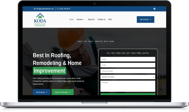 The new website now delivers a modern, trustworthy digital presence for Koda Construction. It has improved user experience, generated more quote requests, and allowed the brand to showcase its expertise in roofing, remodeling, and home improvements. Visitors spend more time on the site, engage with testimonials and galleries, and leave with a stronger sense of confidence in choosing Koda.