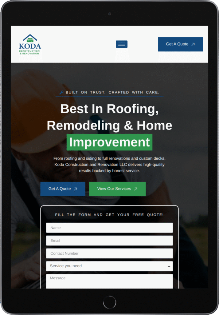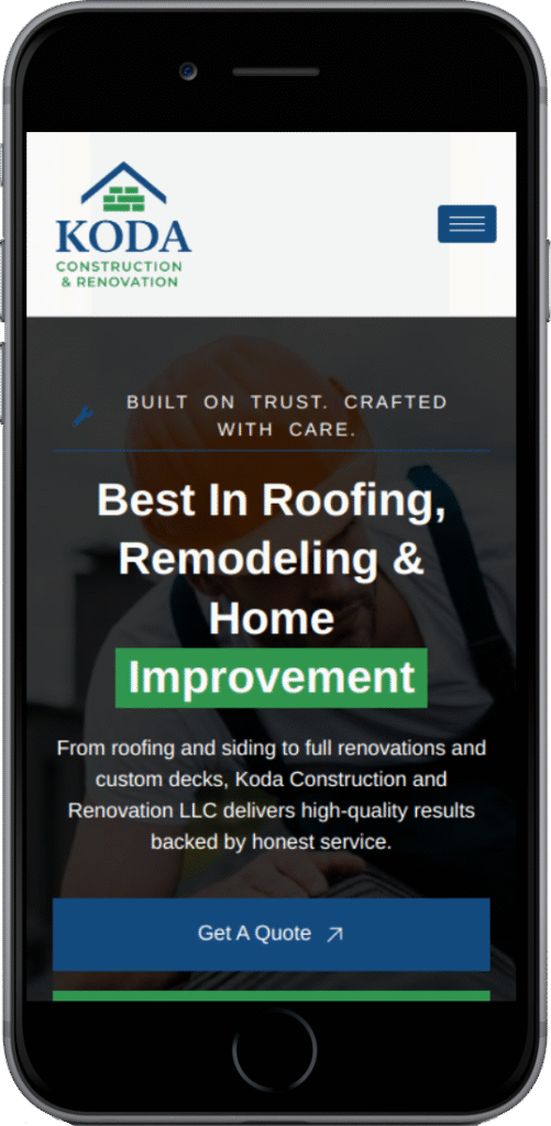The goal was to design a professional, responsive website that communicates trust and highlights the company’s wide range of services. It needed to create a strong first impression, present projects with authenticity, and provide homeowners an easy way to request quotes. At the same time, the site had to reflect Koda’s family-owned values of integrity, respect, and quality craftsmanship.