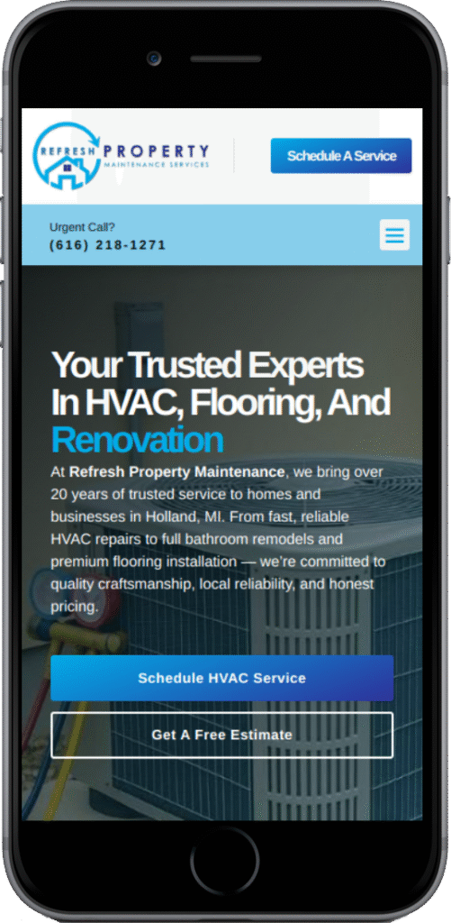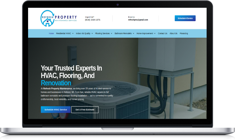 The refreshed website now provides a modern, trustworthy digital presence that aligns with the company’s reputation. Visitors can easily browse services, schedule appointments, and engage with real client feedback. The improved structure and mobile responsiveness have led to better user experience, stronger customer confidence, and more service requests—helping Refresh Property Maintenance strengthen its position in the Holland, MI market.