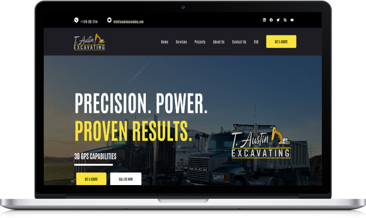 The completed website now serves as a polished digital storefront for T. Austin Excavating. Potential clients can quickly explore services, view projects, and request quotes with ease. The addition of FAQs improved transparency, while optimized structure boosted search visibility. With a strong online presence, the company now effectively communicates professionalism, captures more leads, and positions itself as a trusted excavating partner.