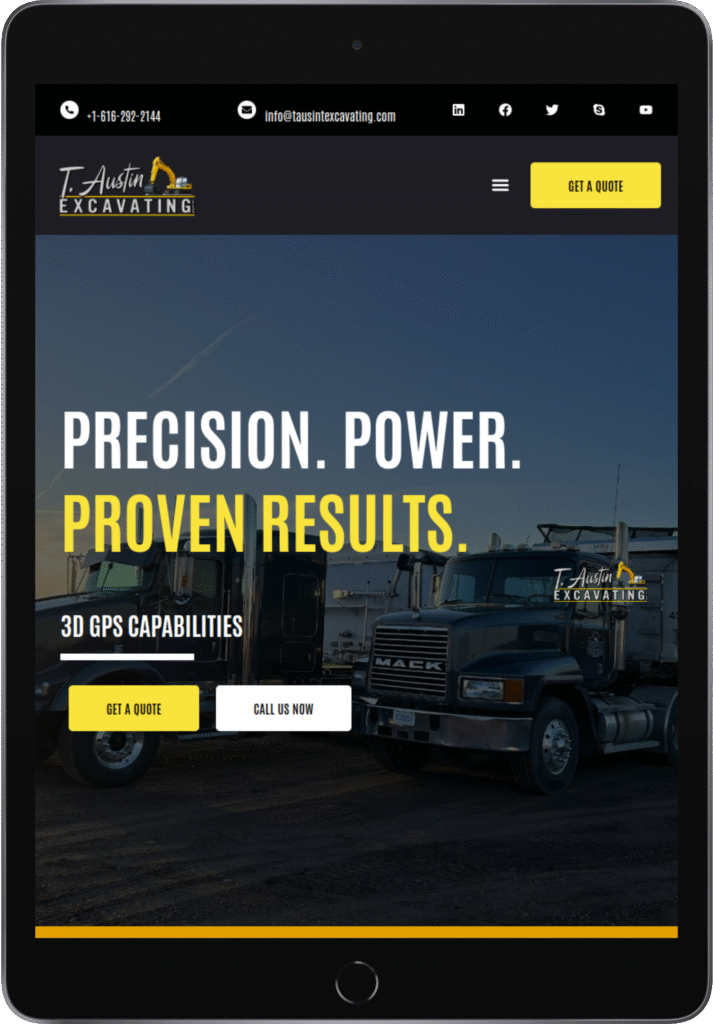 T. Austin Excavating had extensive field expertise but lacked a professional digital presence that matched their precision-driven services. Without a clear website, potential clients couldn’t easily learn about their excavation capabilities, 3D GPS technology, or request quotes. The business struggled with limited online visibility, unclear service communication, and no structured way to capture inquiries from both residential and commercial prospects.